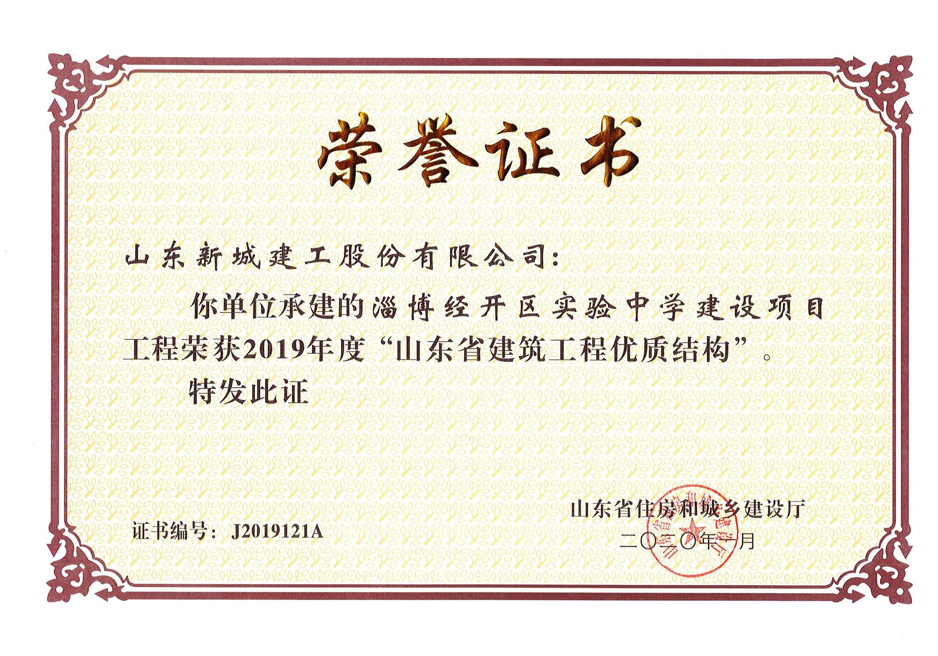 • 淄博经开区实验中学建设项目-2019年度山东省建筑工程优质结构