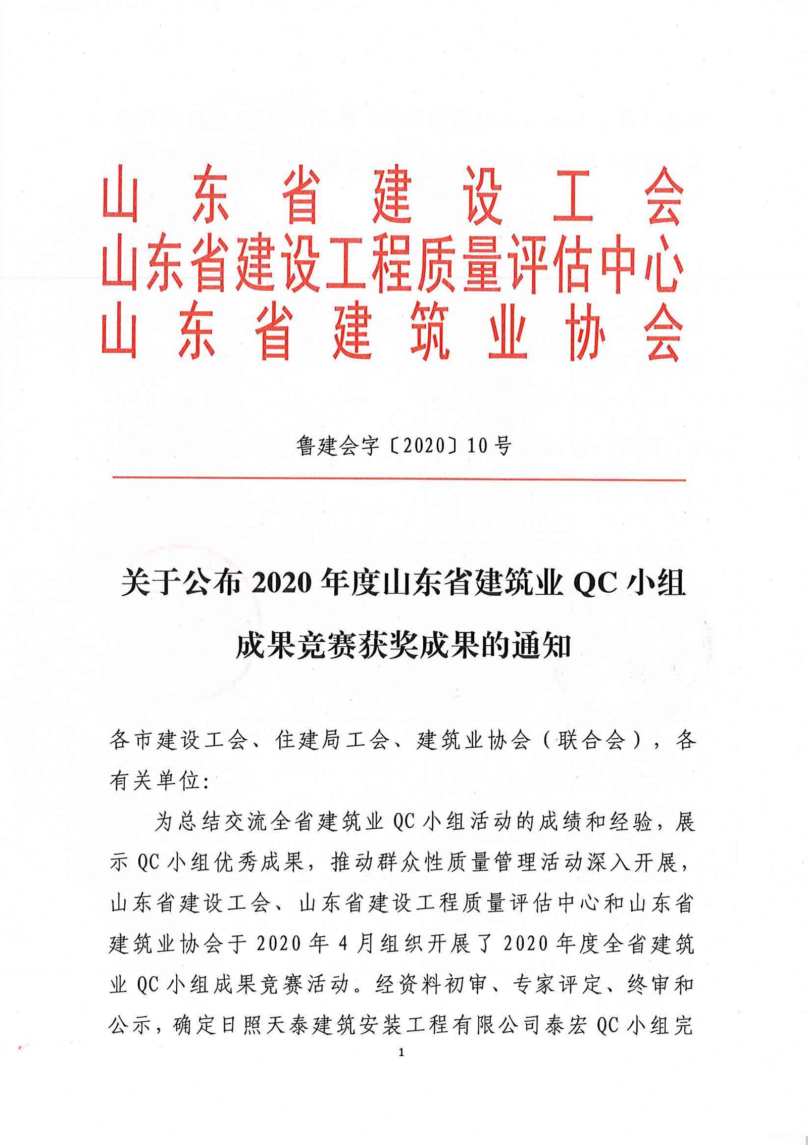 • 关于公布2020年度山东省建筑业QC小组成果竞赛获奖成果的通知-1