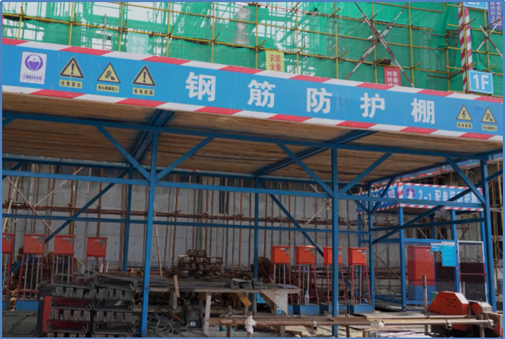 施工现场的钢筋棚、配电箱棚、通道口、临边防护均采用工具式防护, 现场防护棚的工具化实现了周转使用,从而降低工程施工成本。